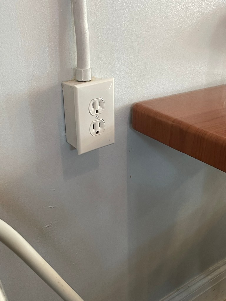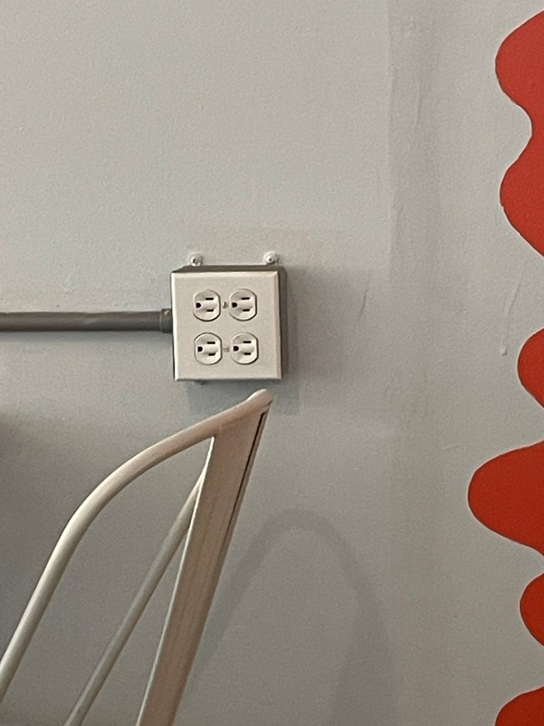 I am positive this setup was created before the owners took over, but it is so hilariously done that it’s impossible not to point out. Every angle possible for an outlet is done at Whimzical. It doesn’t change anything about the place, but I love that it exists that way. I guess dad had been drinking while mom was decorating.