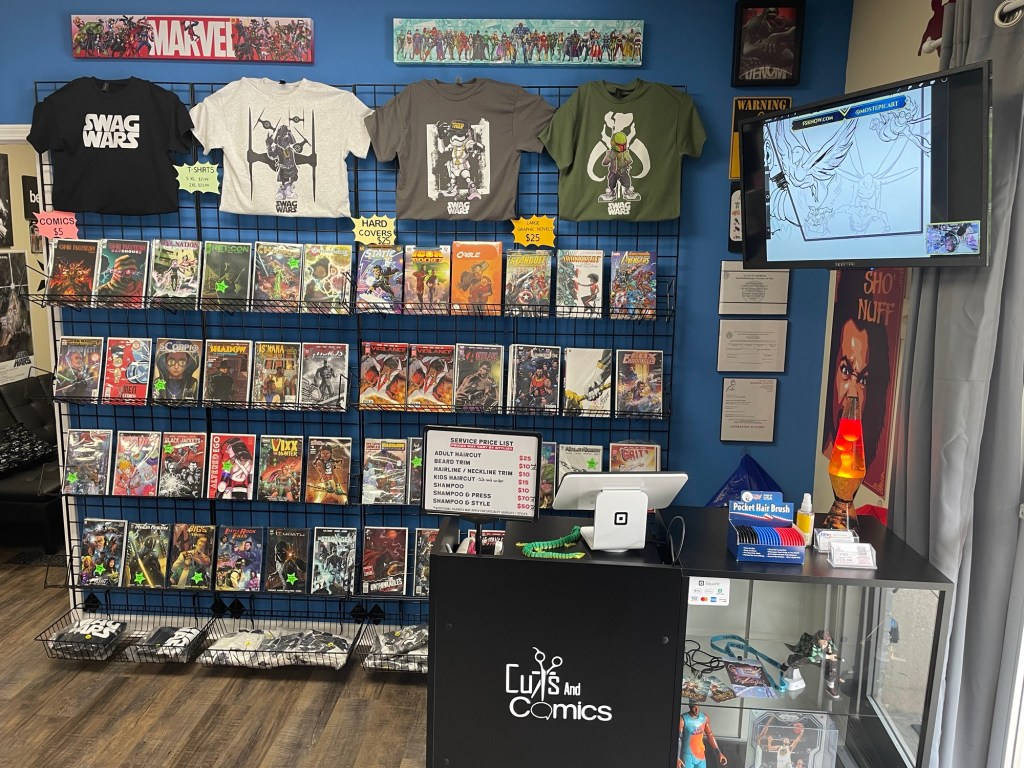 The idea of a Comic Book Barbershop sounds a bit too niche to attract customers, and, admittedly, I avoided attending the first few times I drove by the signs. What is it? Do I buy comics? Do I get haircutties? Can I do one but not the other? Can I do neither and just visit? Can I do both and win prizes (lol no don’t be silly)? Is my life meaningless without the responsibility of raising my daughter? These are all very tough questions that stopped me from just going inside.